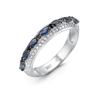 Кольцо с 46 бриллиантами природными, 0.17 карат, огранка круг 17 граней, цвет 2, чистота 3, тип огранки А; 7 сапфирами природными, 0.81 карат, цвет 2, чистота 2, тип огранки Б; Белое золото 585 пробы.