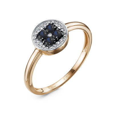 Кольцо с 1 бриллиантом природным, 0.007 карат, огранка круг 57 граней, цвет 3, чистота 6, тип огранки А; 12 бриллиантами природными, 0.02 карат, огранка круг 17 граней, цвет 2, чистота 3, тип огранки А; 4 сапфирами природными, 0.17 карат, цвет 2, чистота 2, тип огранки Б; Розовое золото 585 пробы.
