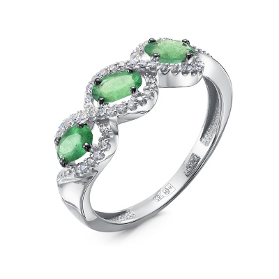 Кольцо с 44 бриллиантами природными, 0.08 карат, огранка круг 17 граней, цвет 2, чистота 3, тип огранки А; 3 изумрудами природными, 0.56 карат, цвет 3, чистота 3, тип огранки Б; Белое золото 585 пробы.