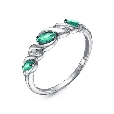 Кольцо с 6 бриллиантами природными, 0.01 карат, огранка круг 17 граней, цвет 2, чистота 3, тип огранки А; 3 изумрудами природными, 0.25 карат, цвет 3, чистота 3, тип огранки Б; Белое золото 585 пробы.
