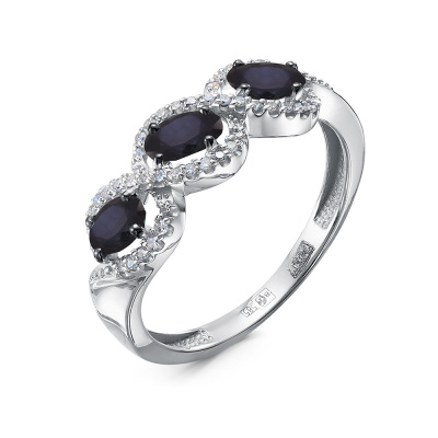 Кольцо с 44 бриллиантами природными, 0.07 карат, огранка круг 17 граней, цвет 2, чистота 3, тип огранки А; 3 сапфирами природными, 0.88 карат, цвет 2, чистота 2, тип огранки Б; Белое золото 585 пробы.