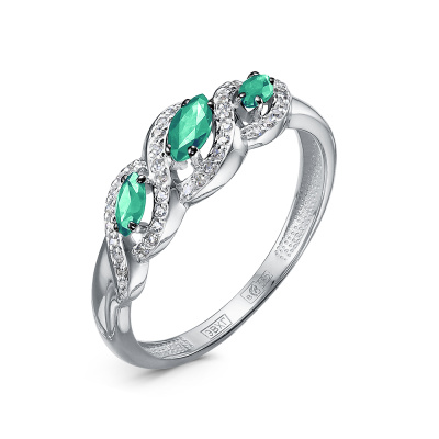 Кольцо с 42 бриллиантами природными, 0.07 карат, огранка круг 17 граней, цвет 2, чистота 3, тип огранки А; 3 изумрудами природными, 0.24 карат, цвет 3, чистота 3, тип огранки Б; Белое золото 585 пробы.
