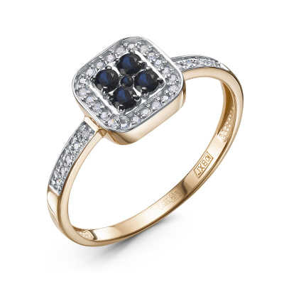 Золотое кольцо с бриллиантами природными и сапфирами природными