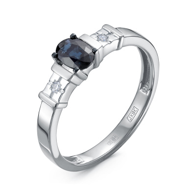 Кольцо с 2 бриллиантами природными, 0.03 карат, огранка круг 57 граней, цвет 3, чистота 6, тип огранки А; 1 сапфиром природным, 0.55 карат, цвет 2, чистота 2, тип огранки Б; Белое золото 585 пробы.