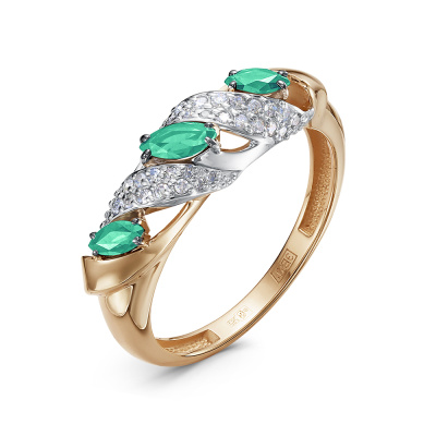 Кольцо с 36 бриллиантами природными, 0.12 карат, огранка круг 17 граней, цвет 2, чистота 3, тип огранки А; 3 изумрудами природными, 0.25 карат, цвет 3, чистота 3, тип огранки Б; Розовое золото 585 пробы.