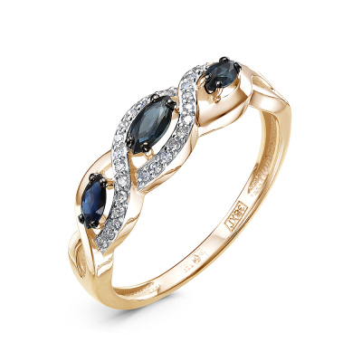 Золотое кольцо с бриллиантами природными и сапфирами природными