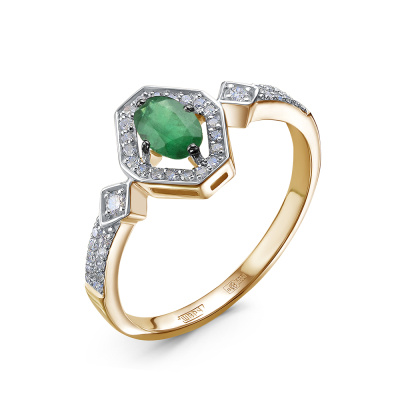 Золотое кольцо с бриллиантами природными и изумрудами природными