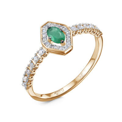 Кольцо с 12 бриллиантами природными, 0.17 карат, огранка круг 57 граней, цвет 3, чистота 6, тип огранки А; 16 бриллиантами природными, 0.06 карат, огранка круг 17 граней, цвет 2, чистота 3, тип огранки А; 1 изумрудом природным, 0.19 карат, цвет 3, чистота 3, тип огранки Б; Розовое золото 585 пробы.