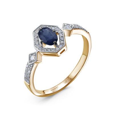 Золотое кольцо с бриллиантами природными и сапфирами природными