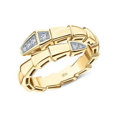 Кольцо с 2 бриллиантами природными, 0.03 карат, огранка круг 57 граней, цвет 3, чистота 6, тип огранки А; 2 бриллиантами природными, 0.02 карат, огранка круг 57 граней, цвет 3, чистота 6, тип огранки А; 1 бриллиантом природным, 0.008 карат, огранка круг 57 граней, цвет 3, чистота 6, тип огранки А; 1 бриллиантом природным, 0.004 карат, огранка круг 17 граней, цвет 2, чистота 2, тип огранки А; Желтое золото 585 пробы.