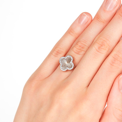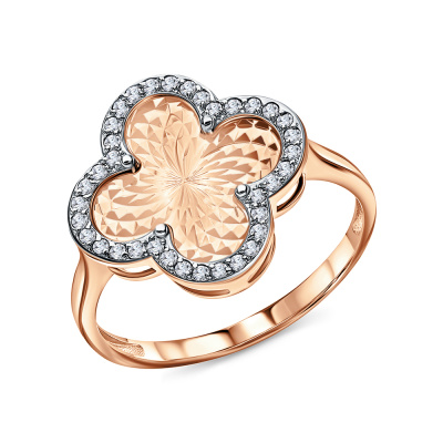 Кольцо с 36 бриллиантами природными, 0.12 карат, огранка круг 17 граней, цвет 2, чистота 2; Розовое золото 585 пробы.