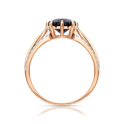 Кольцо с 36 бриллиантами природными, 0.16 карат, огранка круг 17 граней, цвет 2, чистота 2; 1 сапфиром синтетическим, 2.2 карат; Розовое золото 585 пробы.