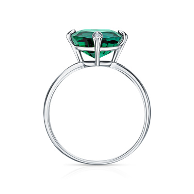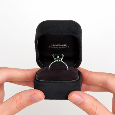 Кольцо с 3 бриллиантами природными, 0.01 карат, огранка круг 17 граней, цвет 2, чистота 2; 1 гидротермальным изумрудом, 3.38 карат; Белое золото 585 пробы.