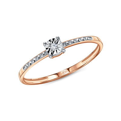 Кольцо с 1 бриллиантом природным, 0.01 карат, огранка круг 57 граней, цвет 3, чистота 6, тип огранки А; Розовое и белое золото 585 пробы.