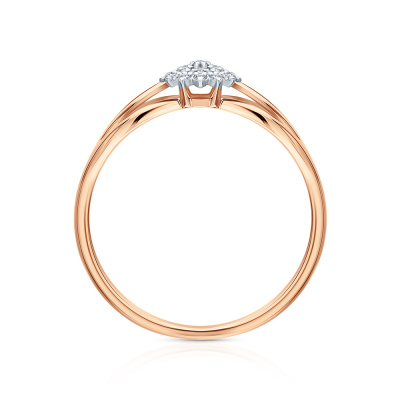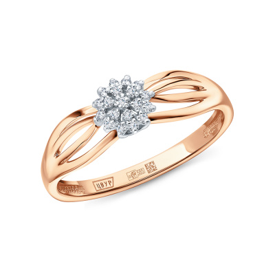 Кольцо с 19 бриллиантами природными, 0.04 карат, огранка круг 17 граней, цвет 2, чистота 2, тип огранки А; Розовое золото 585 пробы.