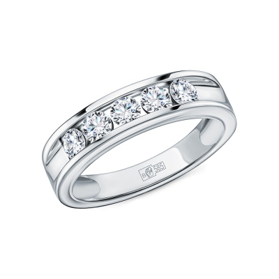 Кольцо с 5 бриллиантами выращенными, 0.53 карат, огранка круг 57 граней, цвет 3, чистота 5, тип огранки А; Белое золото 585 пробы.