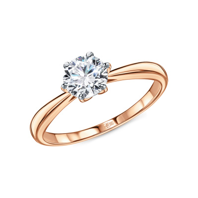 Кольцо с 1 бриллиантом выращенным, 0.961 карат, огранка круг 57 граней, цвет 4, чистота 5, тип огранки А; Розовое золото 585 пробы.