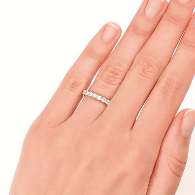 Кольцо с 7 бриллиантами природными, 0.41 карат, огранка круг 57 граней, цвет 3, чистота 6, тип огранки А; Розовое золото 585 пробы.