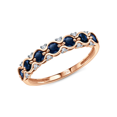 Кольцо с 12 бриллиантами природными, 0.058 карат, огранка круг 17 граней, цвет 2, чистота 2, тип огранки А; 7 сапфирами природными, 0.582 карат, цвет 2, чистота 2, тип огранки В; Розовое золото 585 пробы.