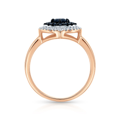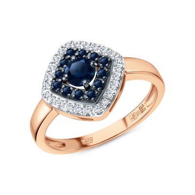 Кольцо с 24 бриллиантами природными, 0.11 карат, огранка круг 17 граней, цвет 2, чистота 2, тип огранки А; 1 сапфиром природным, 0.32 карат, цвет 5, чистота 3, тип огранки В; 12 сапфирами природными, 0.12 карат, цвет 2, чистота 2, тип огранки В; Розовое золото 585 пробы.