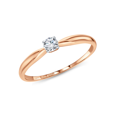 Кольцо с 1 бриллиантом природным, 0.13 карат, огранка круг 57 граней, цвет 3, чистота 6, тип огранки А; Розовое золото 585 пробы.