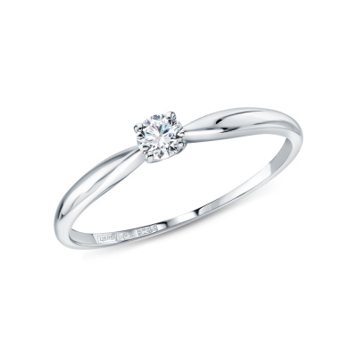 Кольцо с 1 бриллиантом природным, 0.13 карат, огранка круг 57 граней, цвет 3, чистота 6, тип огранки А; Белое золото 585 пробы.