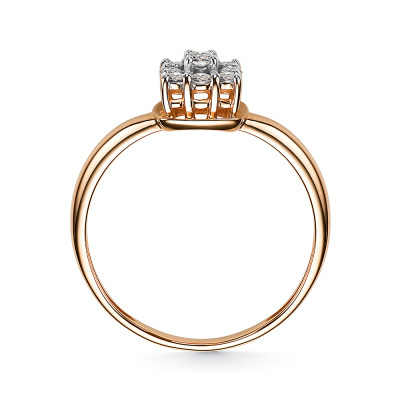 Кольцо с 1 бриллиантом природным, 0.04 карат, огранка круг 57 граней, цвет 4, чистота 6, тип огранки А; 8 бриллиантами природными, 0.16 карат, огранка круг 57 граней, цвет 4, чистота 6, тип огранки А; Розовое золото 585 пробы.