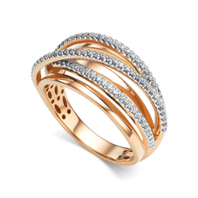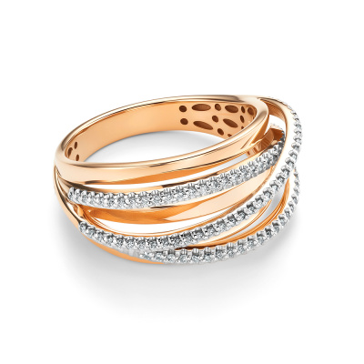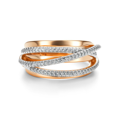 Кольцо с 89 бриллиантами природными, 0.27 карат, огранка круг 57 граней, цвет 4, чистота 5, тип огранки А; Розовое золото 585 пробы.