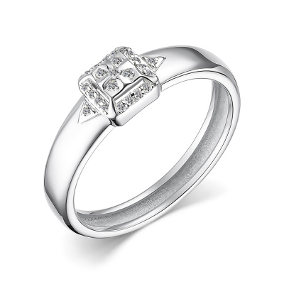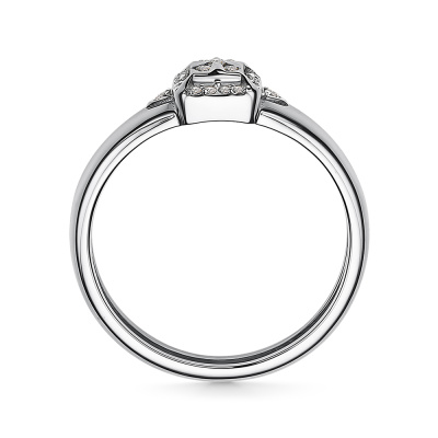 Кольцо с 5 бриллиантами природными, 0.03 карат, огранка круг 57 граней, цвет 4, чистота 5, тип огранки А; 18 бриллиантами природными, 0.04 карат, огранка круг 57 граней, цвет 4, чистота 5, тип огранки А; Белое золото 585 пробы.