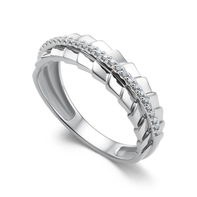 Кольцо с 26 бриллиантами природными, 0.07 карат, огранка круг 57 граней, цвет 4, чистота 5, тип огранки А; Белое золото 585 пробы.