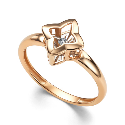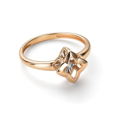 Кольцо с 1 бриллиантом природным, 0.03 карат, огранка круг 57 граней, цвет 4, чистота 6, тип огранки А; Розовое золото 585 пробы.