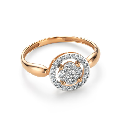Кольцо с 9 бриллиантами природными, 0.06 карат, огранка круг 57 граней, цвет 4, чистота 5, тип огранки А; 24 бриллиантами природными, 0.09 карат, огранка круг 57 граней, цвет 4, чистота 5, тип огранки А; Розовое золото 585 пробы.