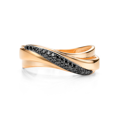Кольцо с 25 бриллиантами черными природными облагороженными, 0.15 карат, огранка круг 57 граней, цвет 7, чистота 6, тип огранки А; Розовое золото 585 пробы.