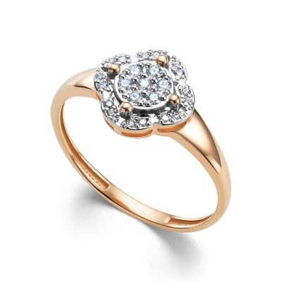 Кольцо с 7 бриллиантами природными, 0.083 карат, огранка круг 57 граней, цвет 4, чистота 5, тип огранки А; 16 бриллиантами природными, 0.05 карат, огранка круг 57 граней, цвет 4, чистота 5, тип огранки А; Розовое золото 585 пробы.