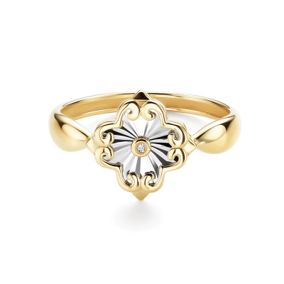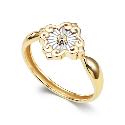 Кольцо с 1 бриллиантом природным, 0.008 карат, огранка круг 57 граней, цвет 4, чистота 6, тип огранки А; Желтое золото 585 пробы.