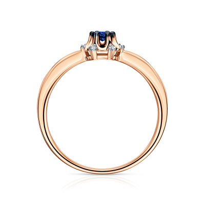 Кольцо с 6 бриллиантами природными, 0.01 карат, огранка круг 17 граней, цвет 2, чистота 2, тип огранки А; 1 сапфиром природным, 0.1 карат, цвет 2, чистота 2, тип огранки В; Розовое золото 585 пробы.