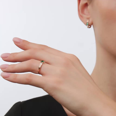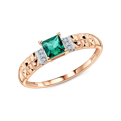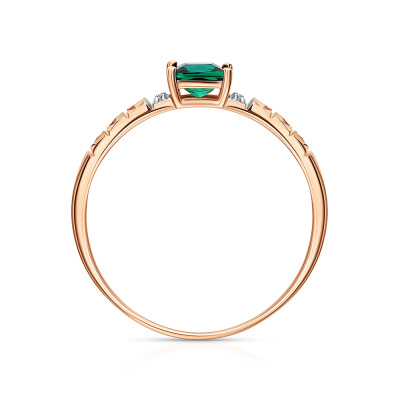 Кольцо с 6 бриллиантами природными, 0.01 карат, огранка круг 17 граней, цвет 2, чистота 2; 1 гидротермальным изумрудом, 0.28 карат; Розовое золото 585 пробы.