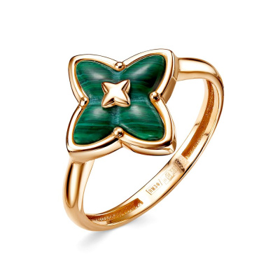 Кольцо с 1 малахитом синтетическим, 1.365 карат; Розовое золото 585 пробы.