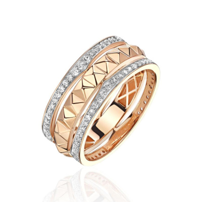 Кольцо с 24 бриллиантами природными, 0.24 карат, огранка круг 17 граней, цвет 2, чистота 3, тип огранки А; 80 бриллиантами природными, 0.32 карат, огранка круг 17 граней, цвет 2, чистота 2, тип огранки А; Розовое золото 585 пробы.