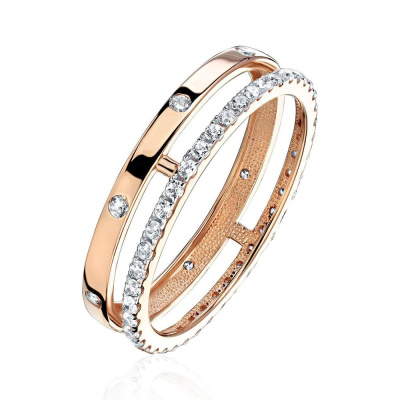 Кольцо с 8 бриллиантами природными, 0.09 карат, огранка круг 17 граней, цвет 2, чистота 2, тип огранки А; 42 бриллиантами природными, 0.31 карат, огранка круг 17 граней, цвет 2, чистота 2, тип огранки А; Розовое золото 585 пробы.