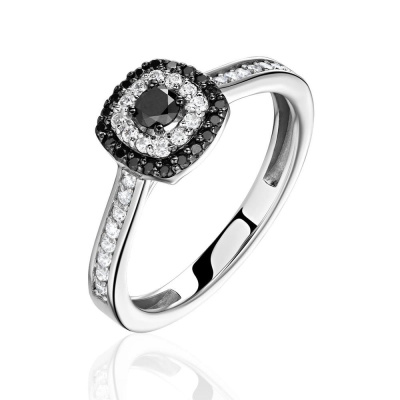 Кольцо с 28 бриллиантами природными, 0.23 карат, огранка круг 57 граней, цвет 3, чистота 6, тип огранки А; 1 бриллиантом природным облагороженным, 0.12 карат, огранка круг 57 граней, цвет 7, чистота 6, тип огранки А; 20 бриллиантами природными облагороженными, 0.12 карат, огранка круг 57 граней, цвет 7, чистота 6, тип огранки А; Белое золото 585 пробы.