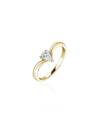 Кольцо с 1 бриллиантом природным, 0.32 карат, огранка груша 56 граней, цвет 3, чистота 5, тип огранки А; Желтое золото 585 пробы.