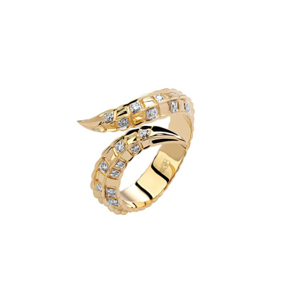 Кольцо с 3 бриллиантами природными, 0.03 карат, огранка круг 57 граней, цвет 5, чистота 3, тип огранки А; 15 бриллиантами природными, 0.13 карат, огранка круг 57 граней, цвет 4, чистота 5, тип огранки А; 10 бриллиантами природными, 0.05 карат, огранка круг 57 граней, цвет 3, чистота 6, тип огранки А; Желтое золото 585 пробы.