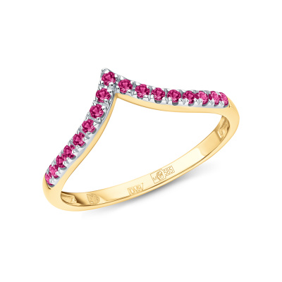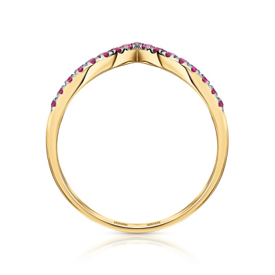 Кольцо с 17 рубинами природными, 0.2 карат, цвет 2, чистота 2; Желтое золото 585 пробы.