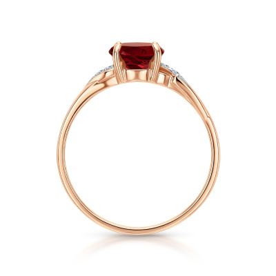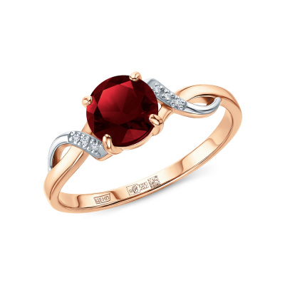 Кольцо с 6 бриллиантами природными, 0.01 карат, огранка круг 17 граней, цвет 2, чистота 2, тип огранки А; 1 гранатом природным, 0.94 карат; Розовое золото 585 пробы.