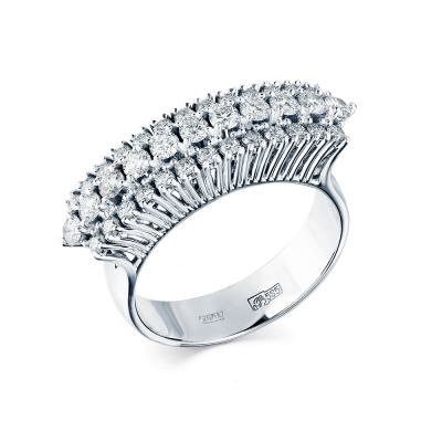 Кольцо с 11 бриллиантами природными, 0.61 карат, огранка круг 57 граней, цвет 3, чистота 5, тип огранки А; 26 бриллиантами природными, 0.47 карат, огранка круг 57 граней, цвет 3, чистота 5, тип огранки А; Белое золото 585 пробы.