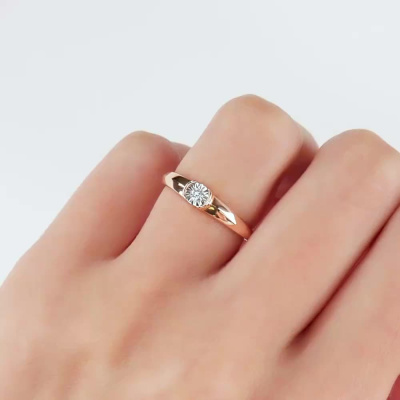 Кольцо с 1 бриллиантом природным, 0.04 карат, огранка круг 57 граней, цвет 3, чистота 5, тип огранки А; Розовое и белое золото 585 пробы.