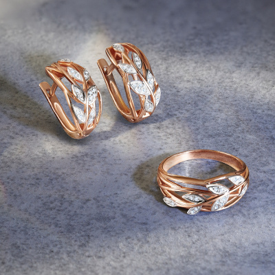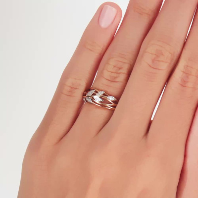 Кольцо с 17 бриллиантами природными, 0.05 карат, огранка круг 17 граней, цвет 2, чистота 2, тип огранки Б; Розовое золото 585 пробы.