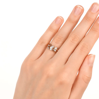Кольцо с 17 бриллиантами природными, 0.048 карат, огранка круг 17 граней, цвет 2, чистота 2, тип огранки А; Розовое золото 585 пробы.