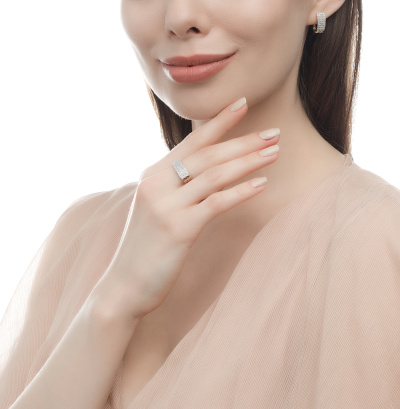 Кольцо с 71 бриллиантом природным, 0.2 карат, огранка круг 17 граней, цвет 2, чистота 2, тип огранки А; Розовое золото 585 пробы.